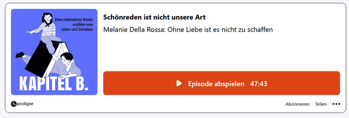 Spannende Geschichten entstehen da, wo das Erzählen schwierig wird, wo passende Begriffe und angemessene Formen erst gefunden werden müssen. In diesem Podcast stelle ich Texte vor, die mir helfen, mich als Mutter eines behinderten Kindes zurechtzufinden, und ich spreche mit anderen Angehörigen darüber, was ihnen das Lesen und Schreiben bedeutet.