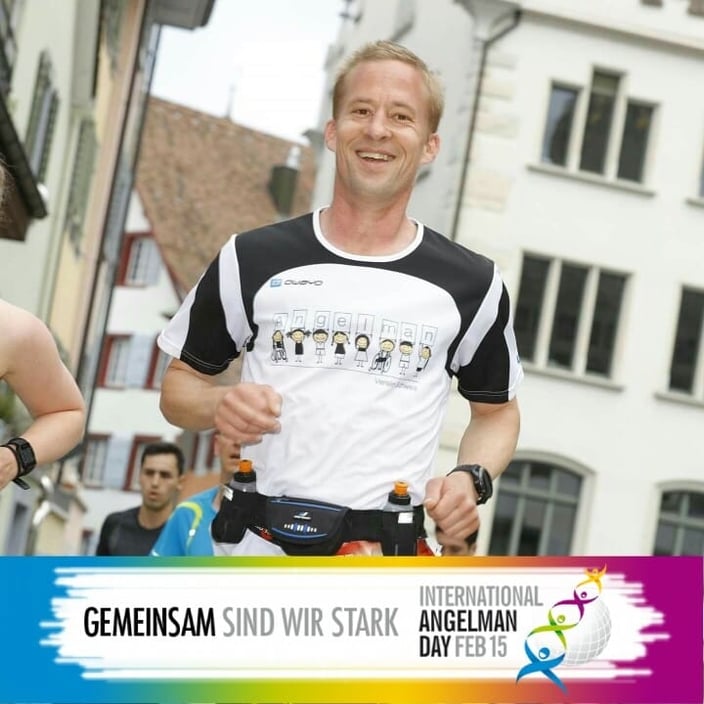 Das Angelman-Shirt mit der 15 auf dem Rücken trägt er an allen möglichen Laufveranstaltungen im In- und Ausland. Wir sind sehr stolz, ihn an unserer Seite zu haben!