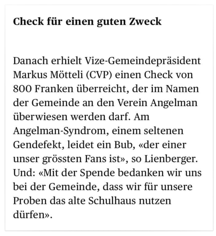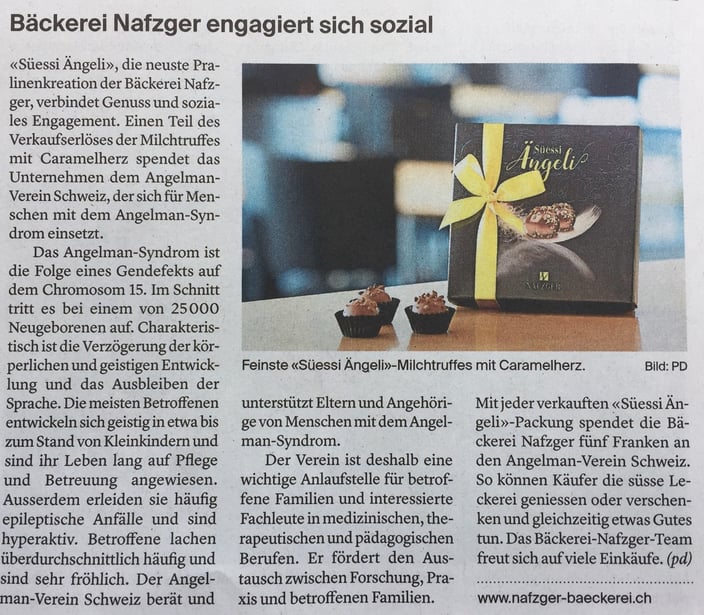 Eine Schachtel „Süessi Ängeli“ kostet Fr. 21.50 und kann im Hauptgeschäft in Wängi und in der Filiale in der Passage in Frauenfeld gekauft werden. Von jeder verkauften Schachtel spendet die Bäckerei Nafzger Ende Jahr dem Angelman Verein Schweiz Fr. 5.00.