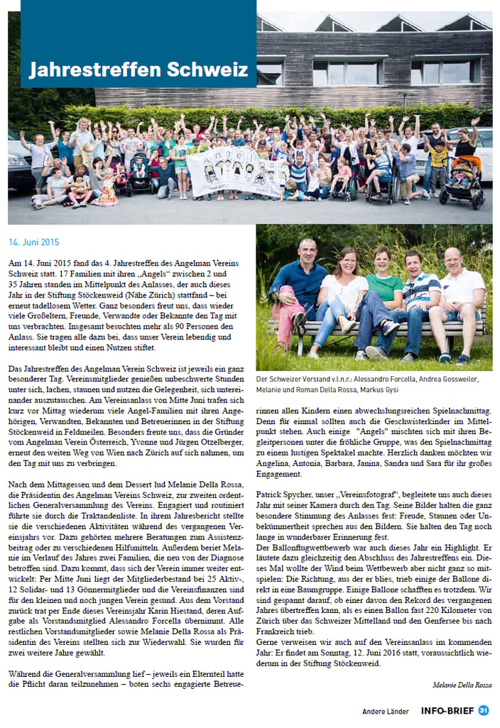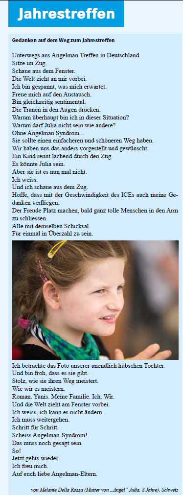Bericht im Info-Brief vom Angelman Verein Deutschland 2015