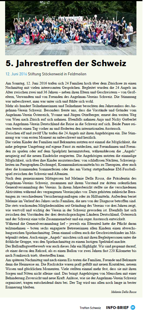 Bericht im Info-Brief vom Angelman Verein Deutschland 2016