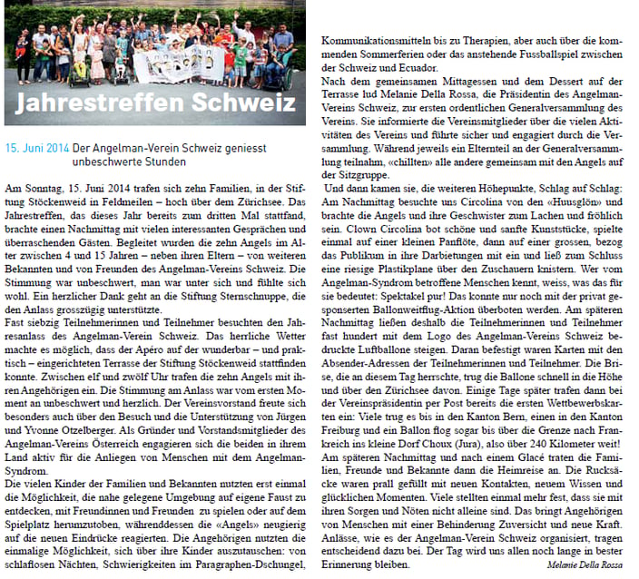 Bericht im Info-Brief vom Angelman Verein Deutschland Dez. 2014