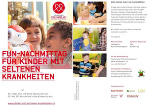Der Förderverein für Kinder mit seltenen Krankheiten lädt am 10. Mai 2014 von 14.00 - 18.00 Uhr alle Angelman Kinder, deren Geschwister, Freunde, Eltern und Grosseltern