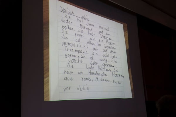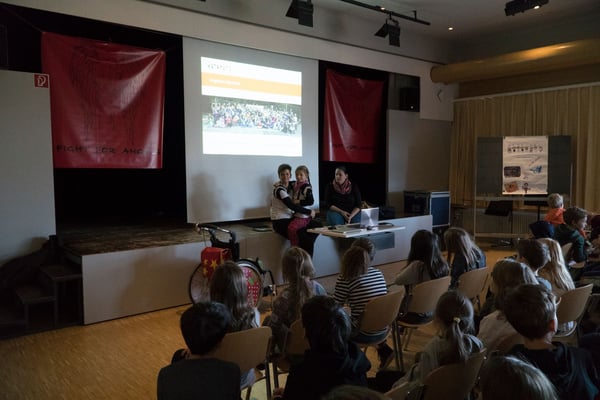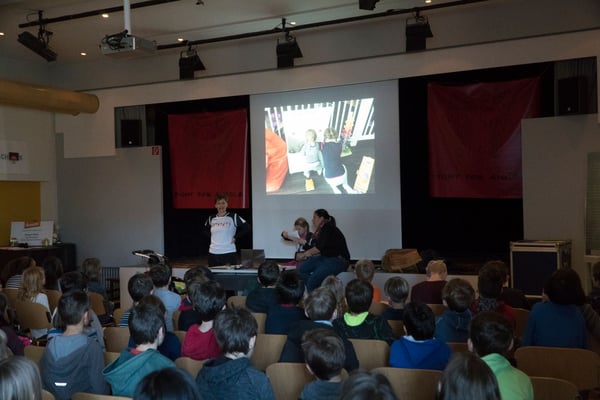 Damit die jungen Sportler auch wissen für was sie an diesem Tag an ihre Grenzen gehen werden, durfte ich als Präsidentin des Angelman Vereins im Vorfeld einen Vortrag halten. Auch "Angel" Julia war mit dabei und die Kinder im selben Alter waren sehr interessiert, stellten unzählige Fragen und hörten den Erzählungen aus unserem Alltag sehr gespannt zu. Es war ein sehr emotionaler Morgen und ich bin tief berührt, mit welch grossem Engagement alle mit dabei sind!