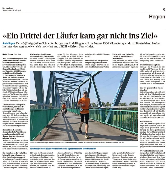 Julian läuft im August am Deutschlandlauf 1300 km quer durch unser Nachbarland!