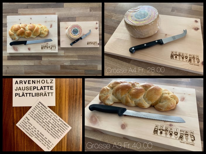 Sie fertigt ab sofort diese wunderschönen und beruhigend riechenden Arvenholz-Brettchen mit unserem Logo an!