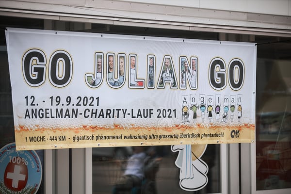Der Angelman-Charity Lauf endet nach einer Woche voller wunderschöner und berührender Begegnungen in Frauenfeld auf dem Pasta Premium Gelände, bei Julians Arbeitgeber.