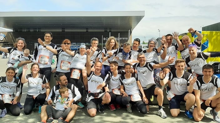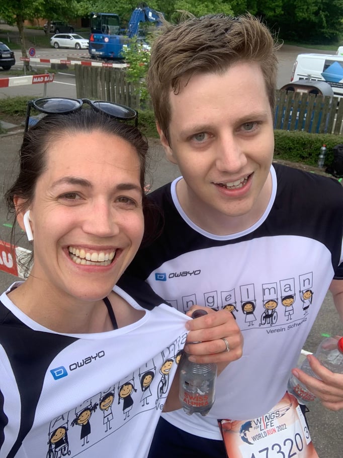 23 Angelman Shirt Träger:innen liefen am diesjährigen Wingsforlife WorldRun in Zug mit.