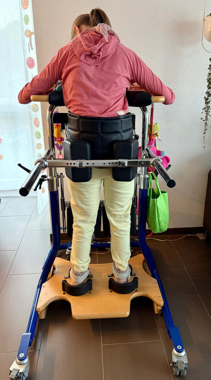Der Freistehbarren ermöglicht somit einem unserer „Angel“ die aufrechte Teilhabe in der Gemeinschaft. Dann wenn die Familie Besuch bekommt, kann sie aufrecht mit dabei sein und ein Teil der
