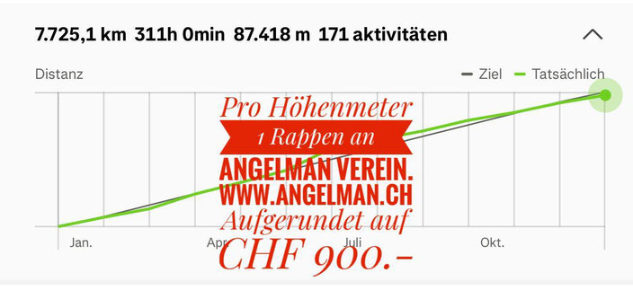 ist zu Ende. Pro Höhenmeter hat unser geschätztes Gönnermitglied Reto 1 Rappen für unseren Verein gespendet! Was für eine tolle Idee und berührende Geste!