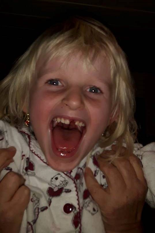 "Typisch Angelman" ist ... trotz soeben verschlucktem Zahn zu kichern.