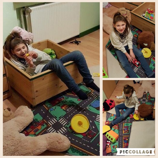 "Typisch Angelman" ist ... dass Kisten und Körbe aller Art Liebelingsplätze sind.