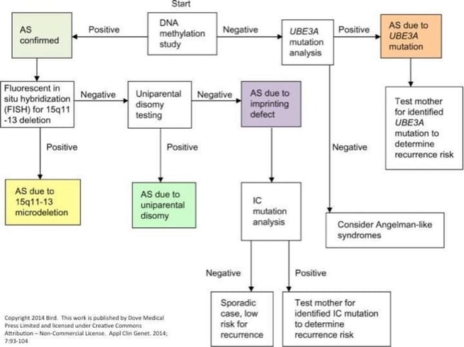 Es ist möglich, das Angelman-Syndrom beim grössten Teil der betroffenen Kinder durch einen Gentest festzustellen. Bei einigen Betroffenen, bei denen man von der klinischen Symptomatik her zwar vom Vorliegen des Syndroms ausgeht, kann dies aber nicht nachgewiesen werden. Ein positiver Gentest kann also das Angelman-Syndrom mit Gewissheit feststellen, jedoch schliesst ein negativer Test es nicht aus.