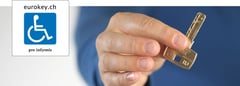 Der Schlüssel zu Behinderten-Toiletten und Liften in Europa wird exklusiv Menschen mit Behinderung abgegeben. Der Schlüssel kann bei den Beratungsstellen von Pro Infirmis bezogen werden.
