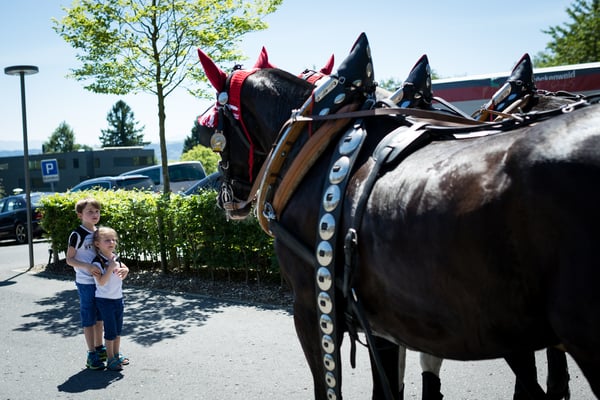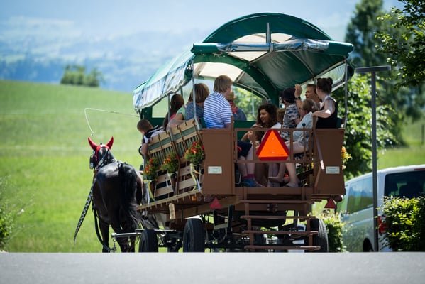 In der Zwischenzeit genossen alle weiteren Gäste des Anlasses den schönen und heissen Nachmittag. Ein besonderes Erlebnis bot eine eigens für den Anlass organisierte Pferdekutsche, welche die Gäste während des ganzen Nachmittags durch die wunderbare Landschaft kutschierte. Wer auf der Kutsche keinen Platz fand, vertrieb sich die Zeit mit Gesprächen, währenddessen die Jüngeren das Kinderprogramm besuchten.